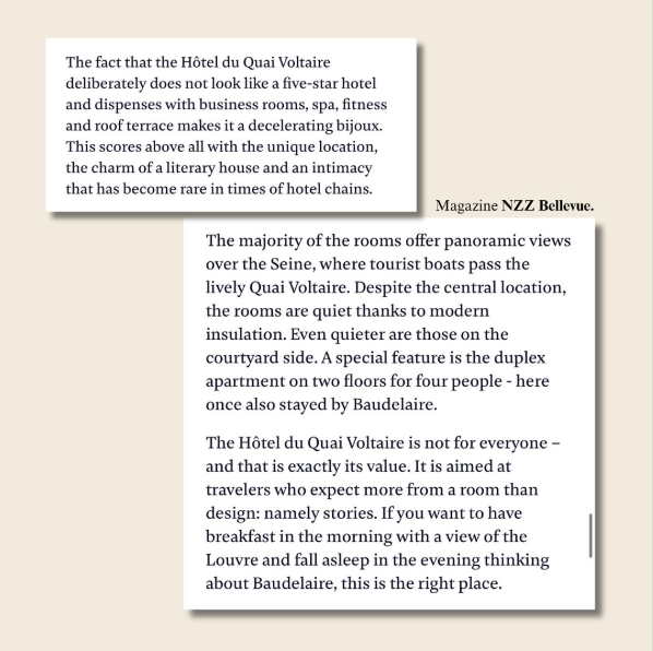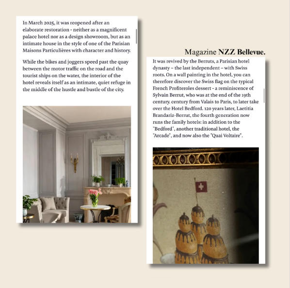 It is a rare gift to find words that capture the invisible: the soul of a place, the memory held within its walls, the subtle thread that binds a house to the family who nurtures it. Our heartfelt thanks to KIM DANG for so gracefully capturing the essence of Quai Voltaire, and for offering a portrait that echoes so faithfully with our story and our spirit. ✨